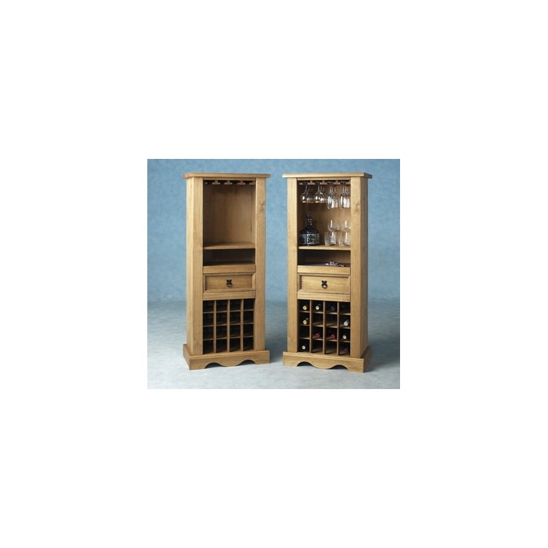 This Cortana wine-rack is made from solid pine with a distressed light waxed finish. Its distinctive design gives a time-worn look to its exterior. The set is made from solid pine and features Matt black studs and handles for that rustic finish.